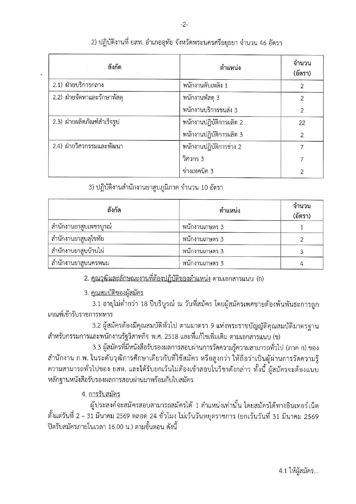 1.2 โรงงานยาสูบ อำเภออุทัย จังหวัดพระนครศรีอยุธยา (รวม 46 อัตรา)