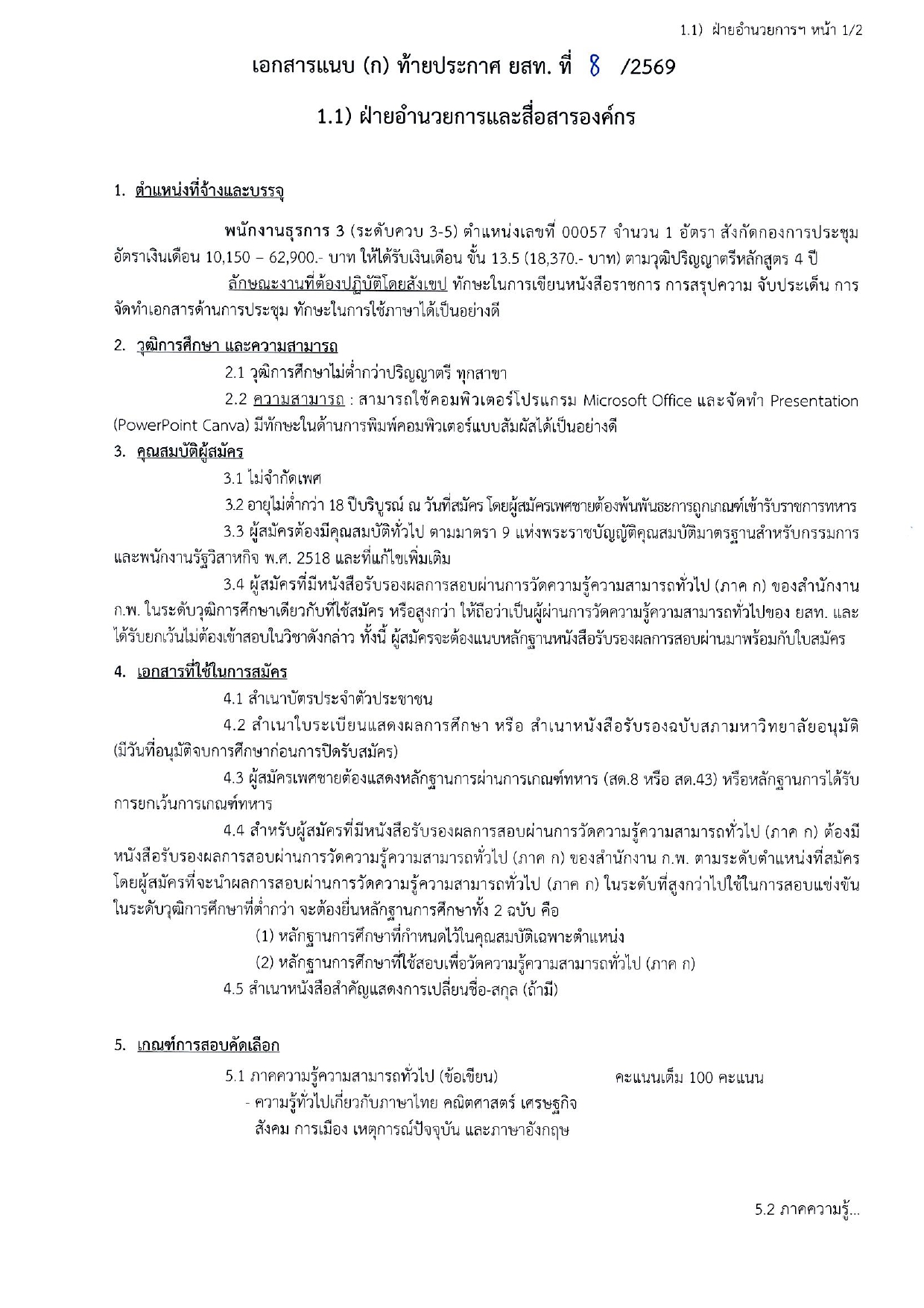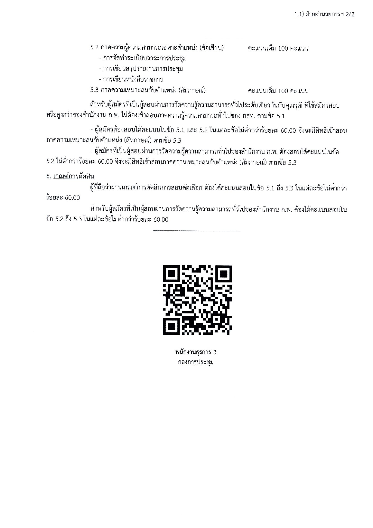 พนักงานธุรการ 3: 2 อัตรา (ฝ่ายอำนวยการฯ 1 อัตรา / ฝ่ายทรัพยากรบุคคล 1 อัตรา)