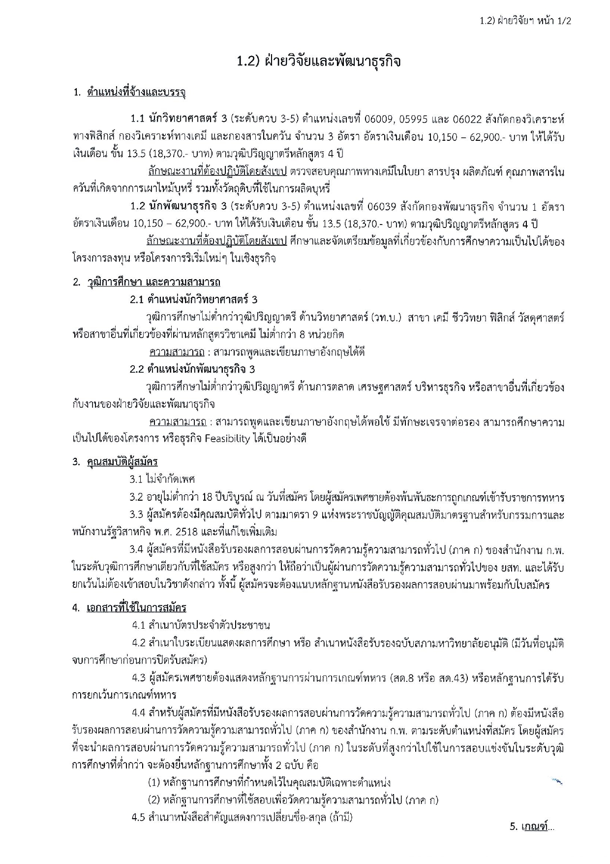 นักวิทยาศาสตร์ 3: 3 อัตรา (ฝ่ายวิจัยและพัฒนาธุรกิจ)