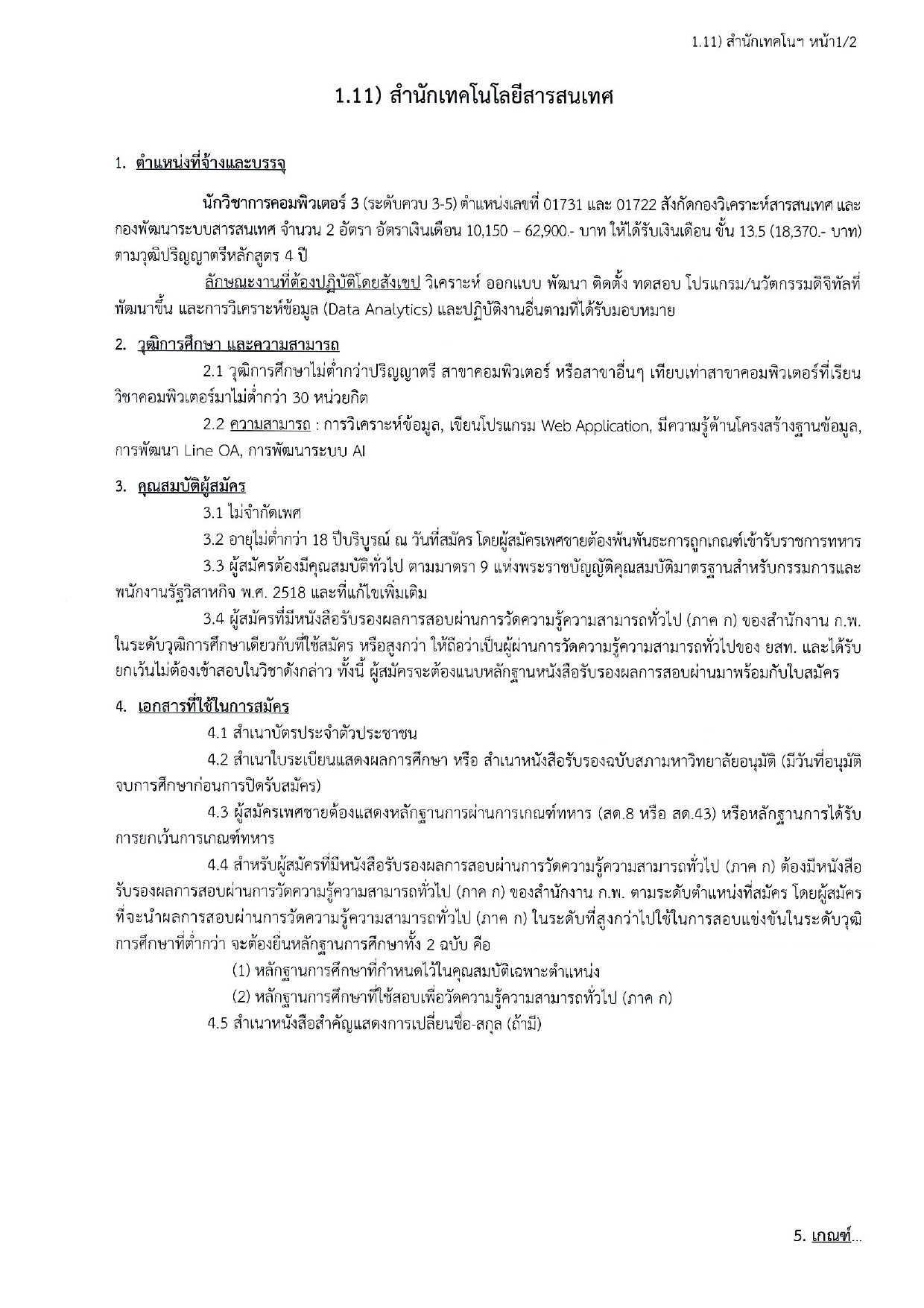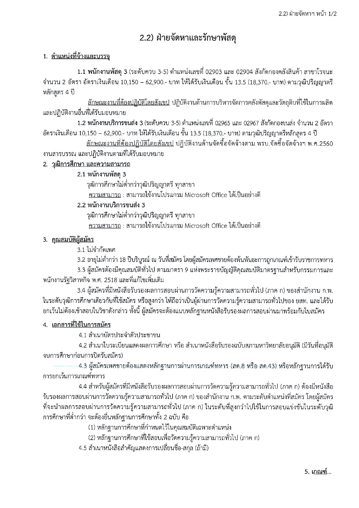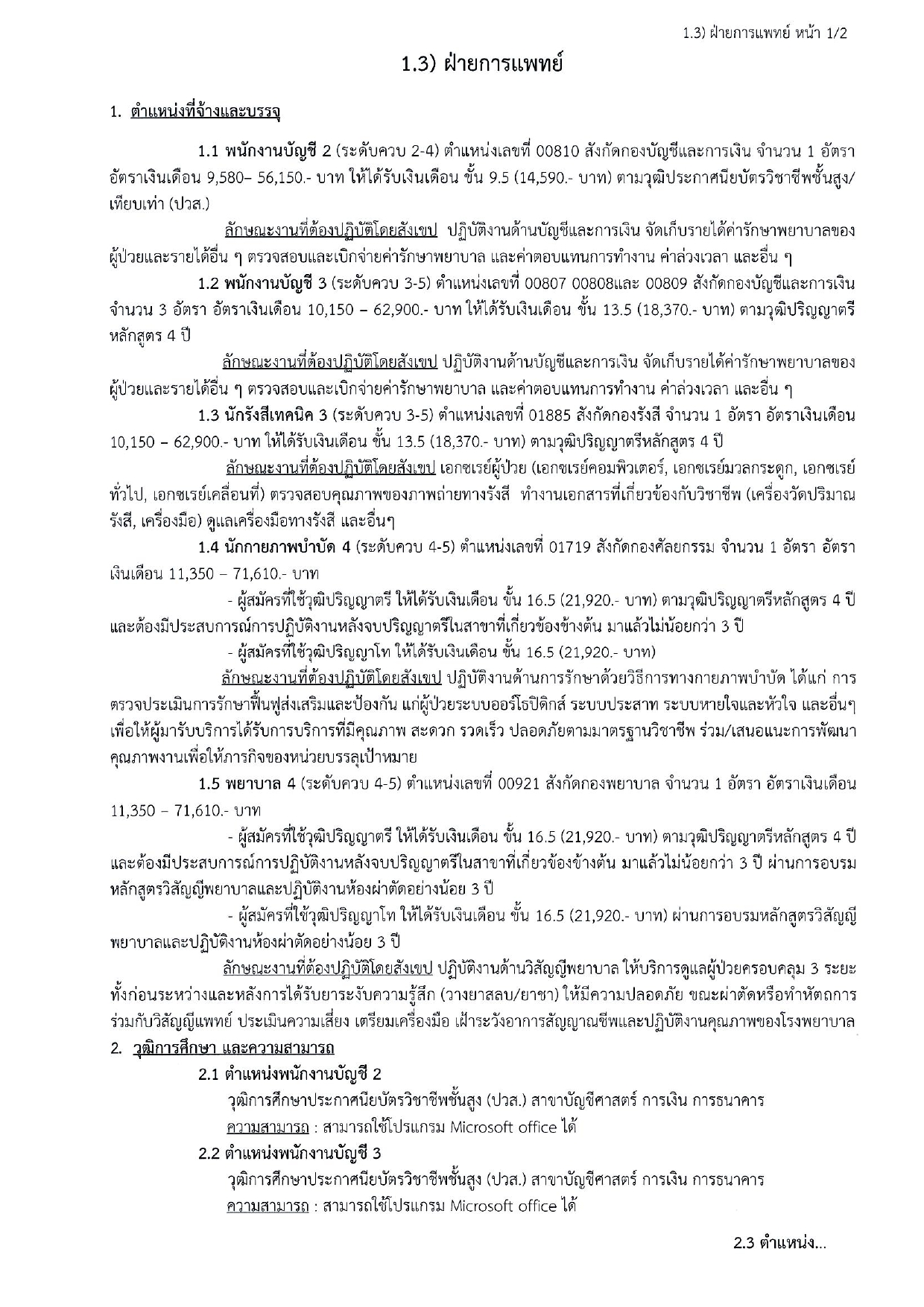 1. ตำแหน่งที่เปิดรับสมัคร (จำแนกตามสถานที่ปฏิบัติงาน)