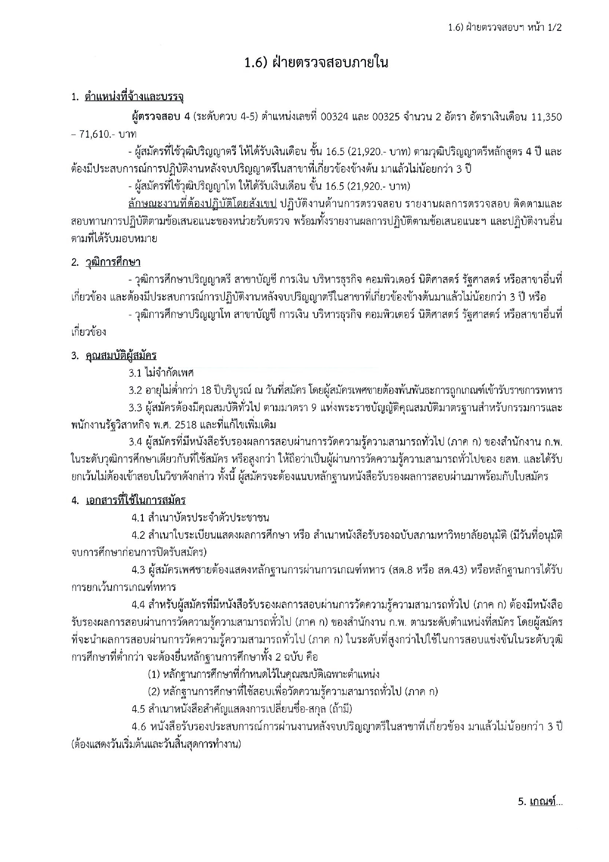 ผู้ตรวจสอบ 4: 2 อัตรา (ฝ่ายตรวจสอบภายใน)