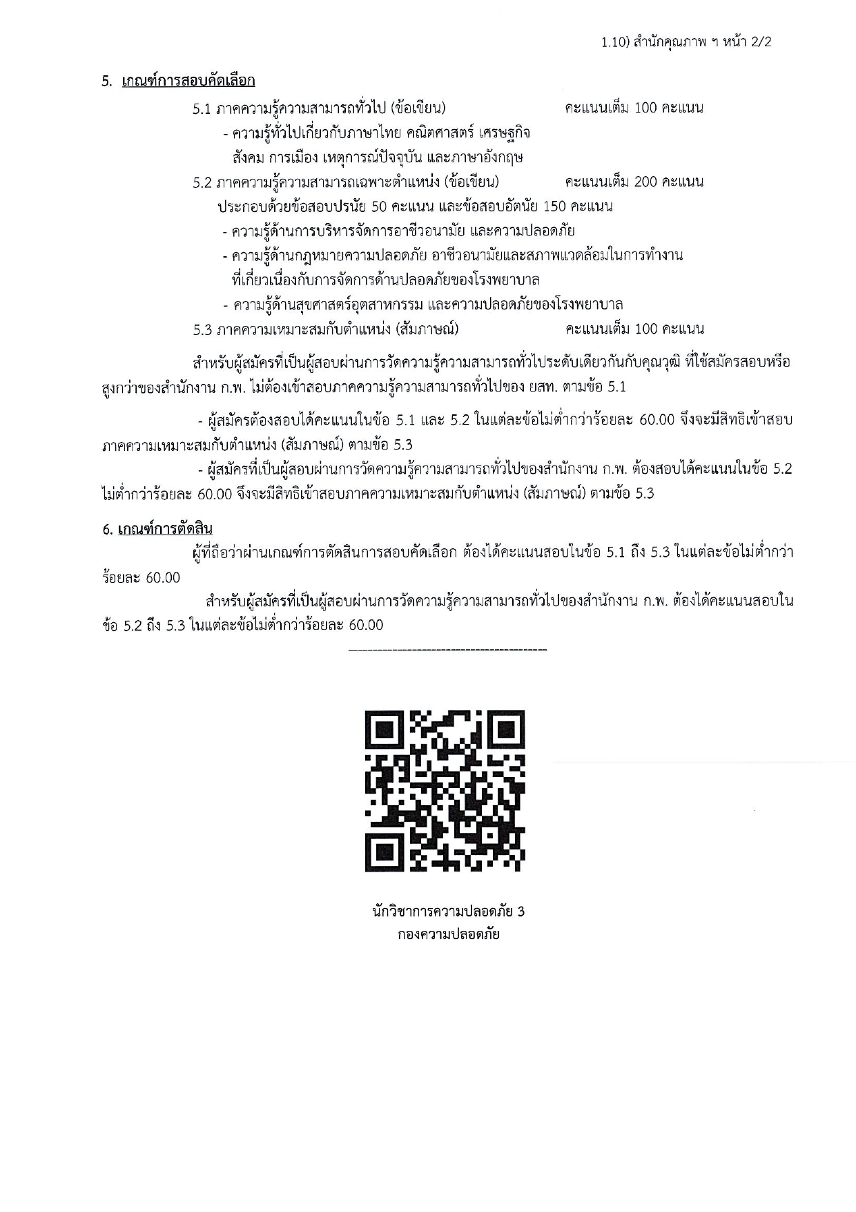 ตำแหน่งอื่น ๆ (ตำแหน่งละ 1 อัตรา): นักรังสีเทคนิค 3, นักกายภาพบำบัด 4, พยาบาล 4, พนักงานจัดหา 3, นักวิเคราะห์การขาย 4, พนักงานป้องกันและปราบปราม 3, นักวิชาการความปลอดภัย 3
