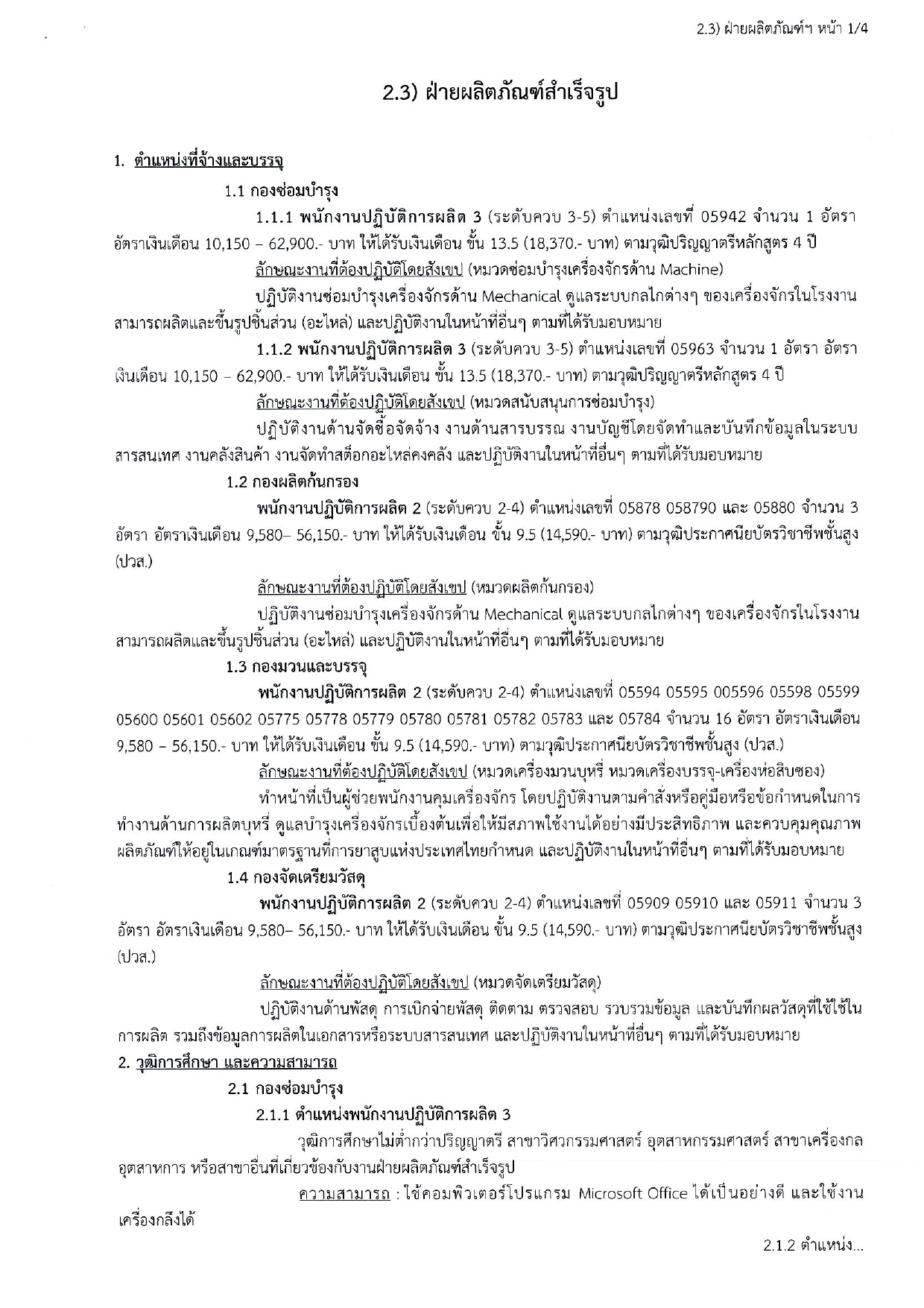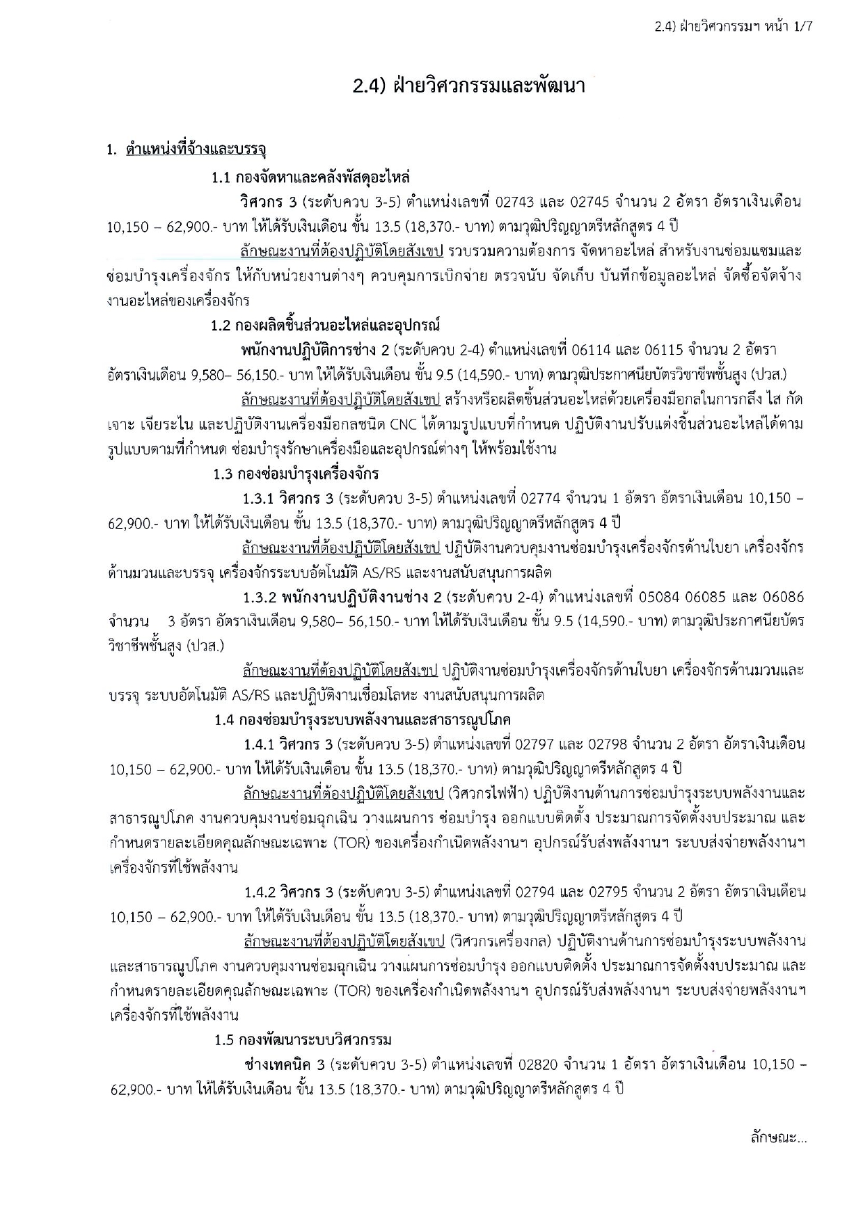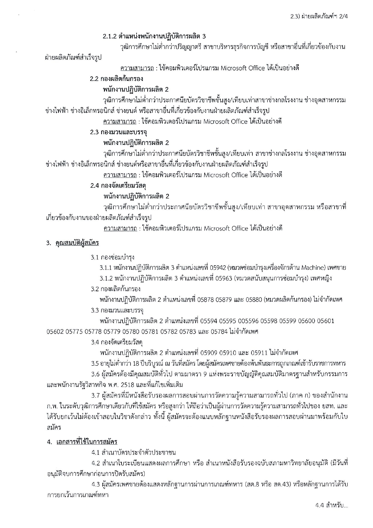 พนักงานปฏิบัติการผลิต: 24 อัตรา (ระดับ 2 จำนวน 22 อัตรา / ระดับ 3 จำนวน 2 อัตรา)