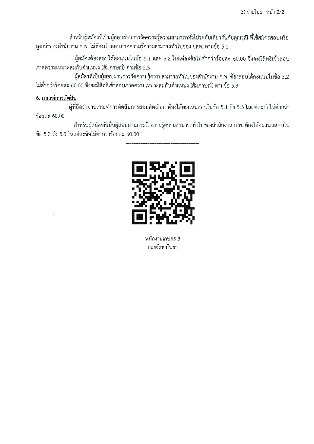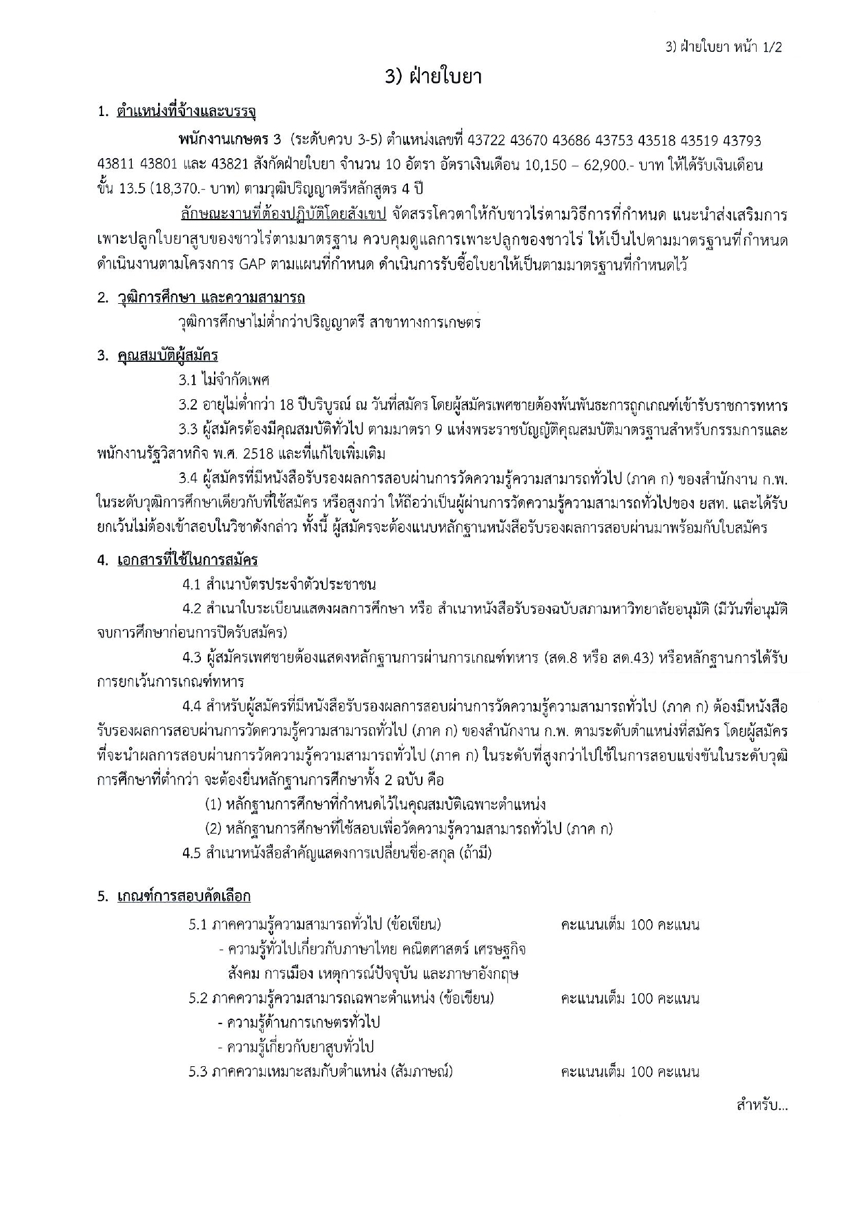 1.3 สำนักงานยาสูบภูมิภาค (รวม 10 อัตรา – ตำแหน่งพนักงานเกษตร 3)