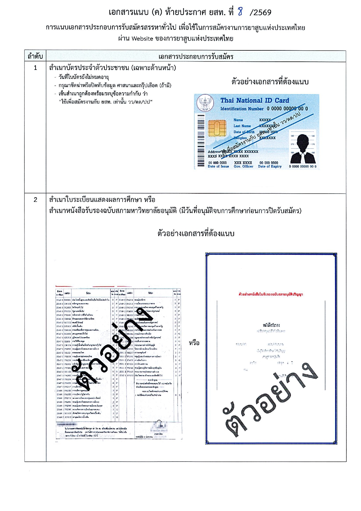 ผู้สมัครชาย: ต้องพ้นภาระการเกณฑ์ทหารแล้ว (มีใบ สด.8 หรือ สด.43 เท่านั้น)