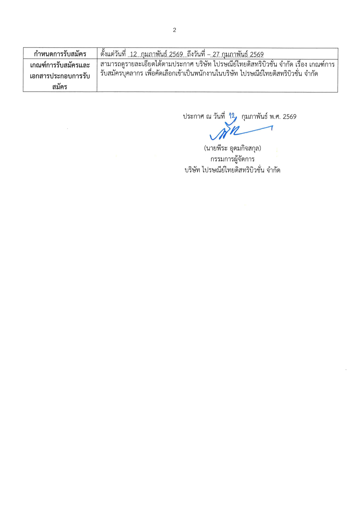 ระยะเวลาการรับสมัคร: ตั้งแต่วันที่ 12 กุมภาพันธ์ 2569 ถึงวันที่ 27 กุมภาพันธ์ 2569